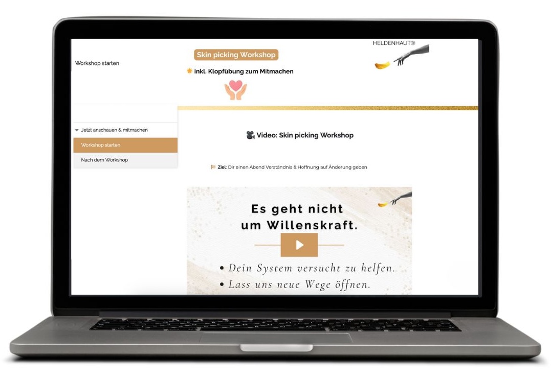 ✨ Wenn du nach dem Workshop merkst: „Okay. Das ist genau mein Thema – ich will das richtig lösen.“ Dann ist der Skinpicking-Onlinekurs der nächste Schritt: strukturierter, tiefer, mit klarer Begleitung durch die Prozesse.